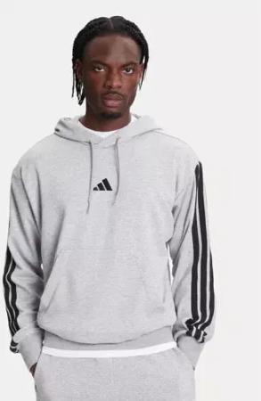 Men's Essential Three Stripes French Terry Hoodie, medium Grey Heather/Black, L