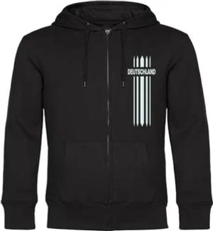 Kapuzen Sweatshirt Jacke - Deutschland - Herzschlag - Druck weiß - Sweat Größe M schwarz