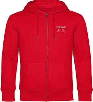 Kapuzen Sweatshirt Jacke - Leipzig - Herzschlag - Druck weiß - Sweat Größe XXL rot