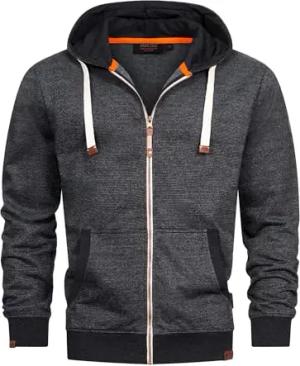 Herren INBaustian Sweatjacke mit RIPP-Bündchen und Kapuze | Kapuzensweater Hoodie für Männer Charcoal Mix, M
