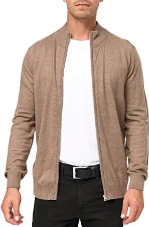 IDAndy Herren Strickjacke Cardigan Grobstrick Pullover mit Stehkragen Reißverschluss Baumwollmischung Regular fit, Größe:3XL, Farbe:Cumnin (014)