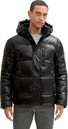 Herren Puffer Winterjacke mit Abnehmbarer Kapuze, 36459 - Shiny Black, XXL