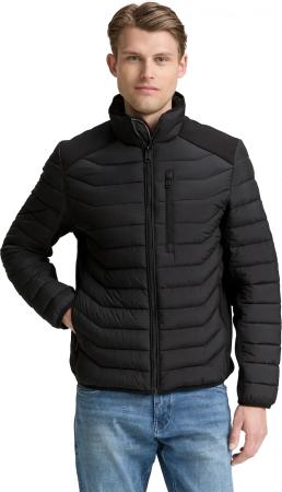 Hybrid Lightweight Steppjacke mit Kapuze im Stehkragen, Black, XL