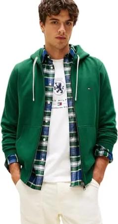 Herren Hoodie mit Reißverschluss Essential Fleece Zip Through mit Taschen, Grün (Ornamental Green), S