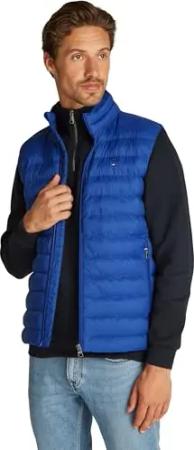 Herren Weste Packable Recycled Vest Stehkragen, Blau (Wedge Blue), S