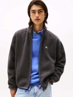 Sweatjacke "BADGE TEDDY" Relaxed fit, Teddy-Fleece, Stehkragen