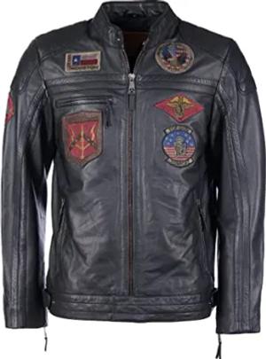 Herren Lederjacke Tgj1005 Black/Blue/Creme,S