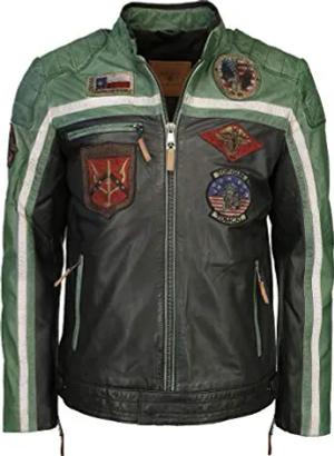 Herren Lederjacke Tgj1005 Black/Green/Creme,XL