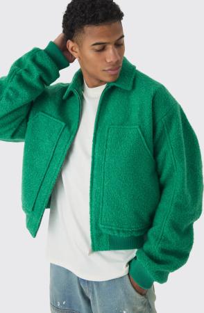 Kastige Bouclee Bomberjacke In Grün Mit Gerafften Ärmeln - Green - M, Green