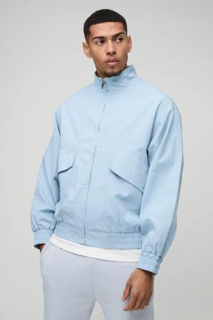 Kastige Oversize Twill-Bomberjacke Mit Trichterkragen Und Taschen-Detail - Blue - L, Blue