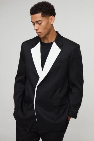 Straight Fit Contrast Panel Suit Blazer - Black - L, Black