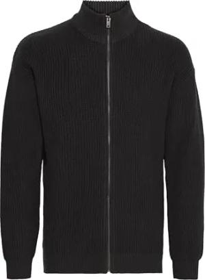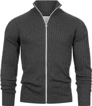 Herren KSCable Zip Strickjacke mit Stehkragen und Reißverschluss | Fein-Strick Cardigan für Männer Charcoal Mix, XXL