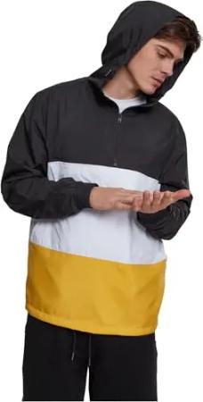 Herren Windbreaker 3-Tone Mix Pull Over Jacket Jacke, Mehrfarbig (Black/Neon Green 01191), Medium (Herstellergröße: M)