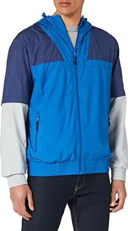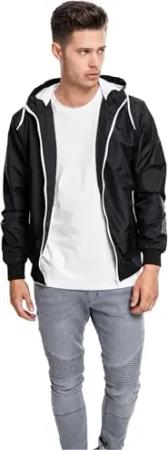 Herren Jacke Contrast Windrunner, Winddichte Übergangsjacke mit Kapuze, Reißverschluss, Regular Fit, blk/wht, L