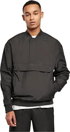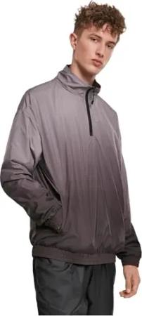 Herren Gradient Pull Over Jacket – Loose Fit Überziehjacke mit Farbverlauf, Stehkragen & Zip-Pocket, Mesh-Innenfutter, Black/grey, M