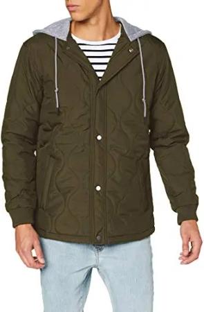 Herren Quilted Hooded Jacket, Dark Olive, S