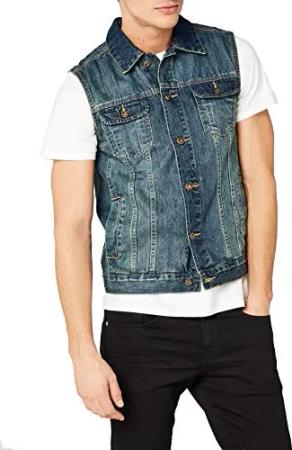 Herren Denim Vest – Jeansweste aus Baumwolle mit Knopfleiste, Brusttaschen und Kragen, ärmellose Weste für Streetwear, Freizeit & Alltag,Denimblue,3XL