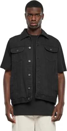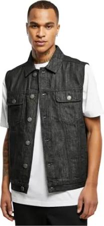 Herren Denim Vest – Jeansweste aus Baumwolle mit Knopfleiste, Brusttaschen und Kragen, ärmellose Weste für Streetwear, Freizeit & Alltag,black washed,L