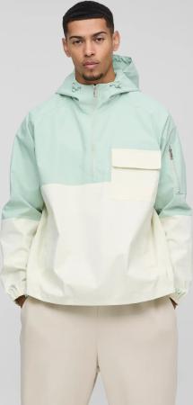 Oversize Colorblock Regenjacke mit Kapuze und Taschen-Detail - Grün - M, Grün