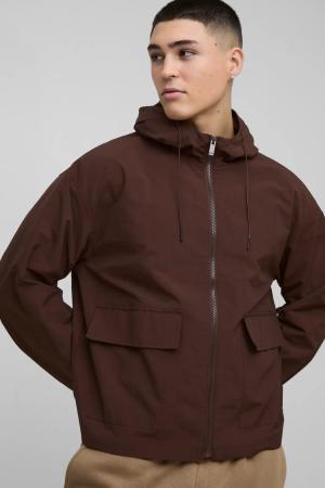 Oversize Nylon-Jacke mit Kapuze - Braun - S, Braun
