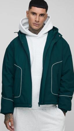 Tall gepolsterter Nylon-Parka mit Paspel-Detail - Grün - 2XL, Grün
