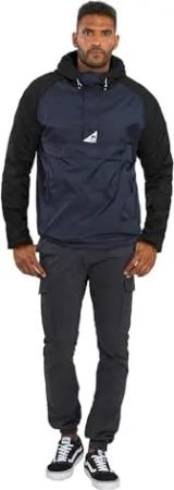 Herren Regenjacke mit Kapuze Windbreaker Schlupfjacke AS324 [AS-324-Navy-Schwarz Größe M-Gr. M]
