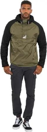 Herren Regenjacke mit Kapuze Windbreaker Schlupfjacke AS324 [AS-324-Olive-Schwarz Größe XL-Gr. XL]