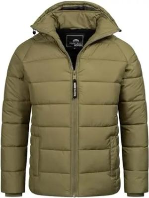 Herren Winter Stepp Jacke gesteppte Winterjacke warm Kapuze AS-333 [AS-333-Dark-Olive-Gr.L]
