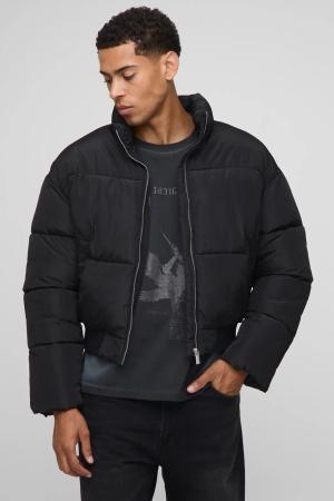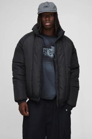 Boxy Fit Mono Padded Bomber Neck Puffer Jacket - Black - S, Black