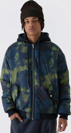 Dunkelblaue Oversize Bomberjacke Mit Abstraktem Print Und Kapuze - Navy - L, Navy