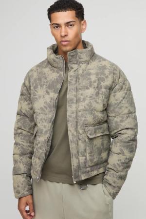 Oversized Boxy Washed Cord Puffer Jacket - Olive - Xl, Olive