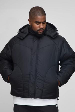 Plus Boxy Quilted Hooded Puffer Coat In Black - 3Xl, Black