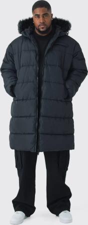 Plus Lange Steppjacke Mit Kunstfell-Kapuze - Black - 3Xl, Black