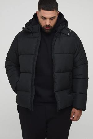 Plus Regular Fit Hooded Matte Puffer Jacket In Black - 3Xl, Black