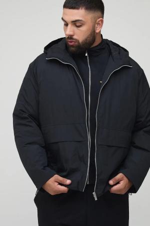 Plus Padded Drawcord Hooded Parka Regular Fit Coat In Black - 3Xl, Black