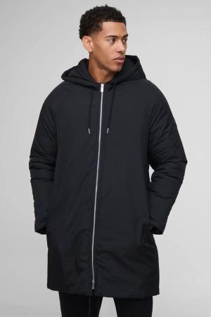 Tall Padded Drawcord Hooded Regular Fit Parka Coat In Black - M, Black