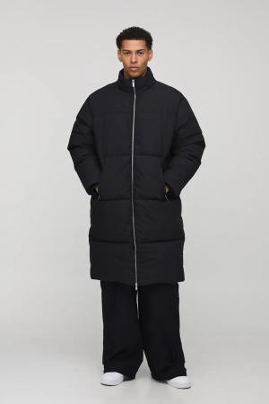 Tall Man Boxy Fit Funnel Neck Puffer Coat In Black - L, Black