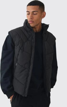 Regular Fit Quilted Funnel Neck Gilet In Black - M, Black