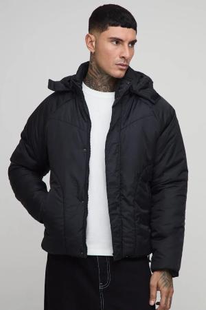 Regular Fit Pintuck Panel Hooded Puffer Jacket - Black - M, Black