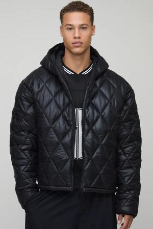 Tall Boxy Quilted Hooded Puffer Coat In Black - S, Black
