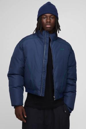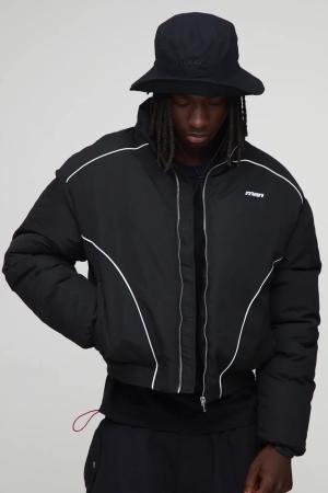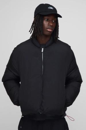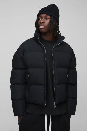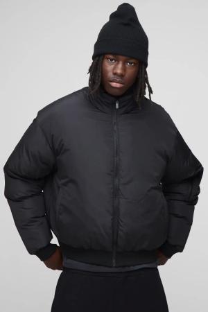 Boxy Fit Mono Padded Bomber Neck Puffer Jacket - Schwarz - S, Schwarz