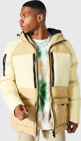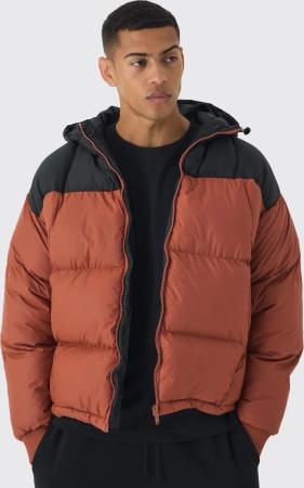 Kastige Colorblock Steppjacke mit Kapuze - Braun - S, Braun