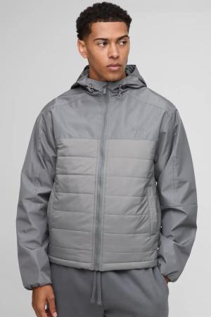 Gesteppte Jacke mit Kapuze - Grau - XL, Grau
