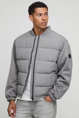 Tall Mono Padded Oversized Bomber Jacket - Grau - M, Grau