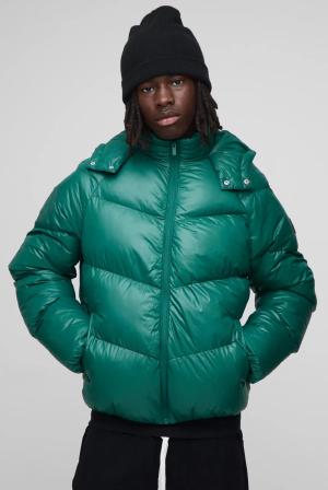 Glänzende Steppjacke mit Kapuze und Trichterkragen - Grün - XL, Grün