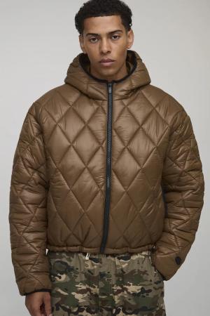 Strukturierte Oversize Mini-Steppjacke mit Kapuze - Braun - S, Braun