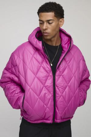 Hochglänzende kastige Oversize Steppjacke mit Trichterkragen - Rosa - L, Rosa