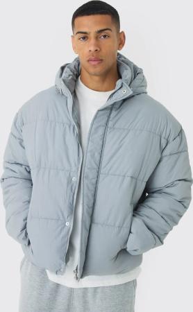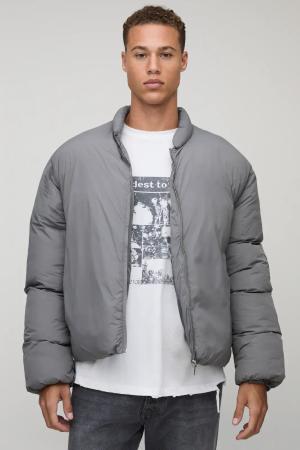 Tall Oversize Nylon Steppjacke mit Trichterkragen - Grau - 2XL, Grau