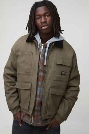 Kastige Oversize Cargo-Jeansjacke - Grün - M, Grün