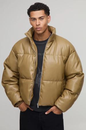 Kastige PU-Jacke - Beige - L, Beige